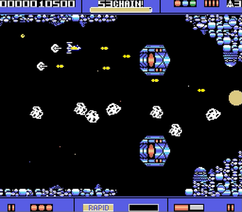 プレイするステージを選択後、2種類のショットと2機のサブ機を持つ機体を操り敵を倒していく横スクロールシューティングゲームです。